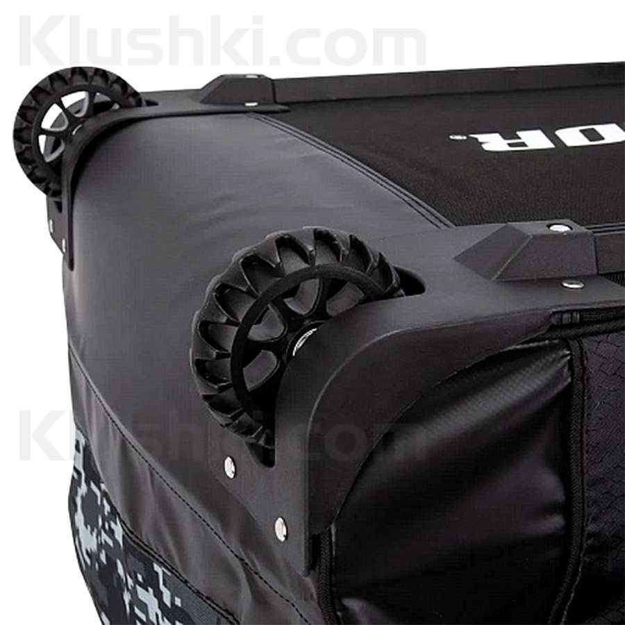 Вместительная, спортивная сумка WARRIOR Q20 CARGO на колесах имеет прочную и удобную конструкцию и отлично подойдет для транспортировки и хранения хоккейной, спортивной формы. На поверхности сумки нанесены яркие логотипы что делает сумку оригинальной. Кастомизируемая подкладка. Модель имеет ручки для транспортировки в руках, ручки изготовлены из прочных нейлоновых ремней, одна из ручек имеет стягивающий элемент, для фиксации ручек вместе.
