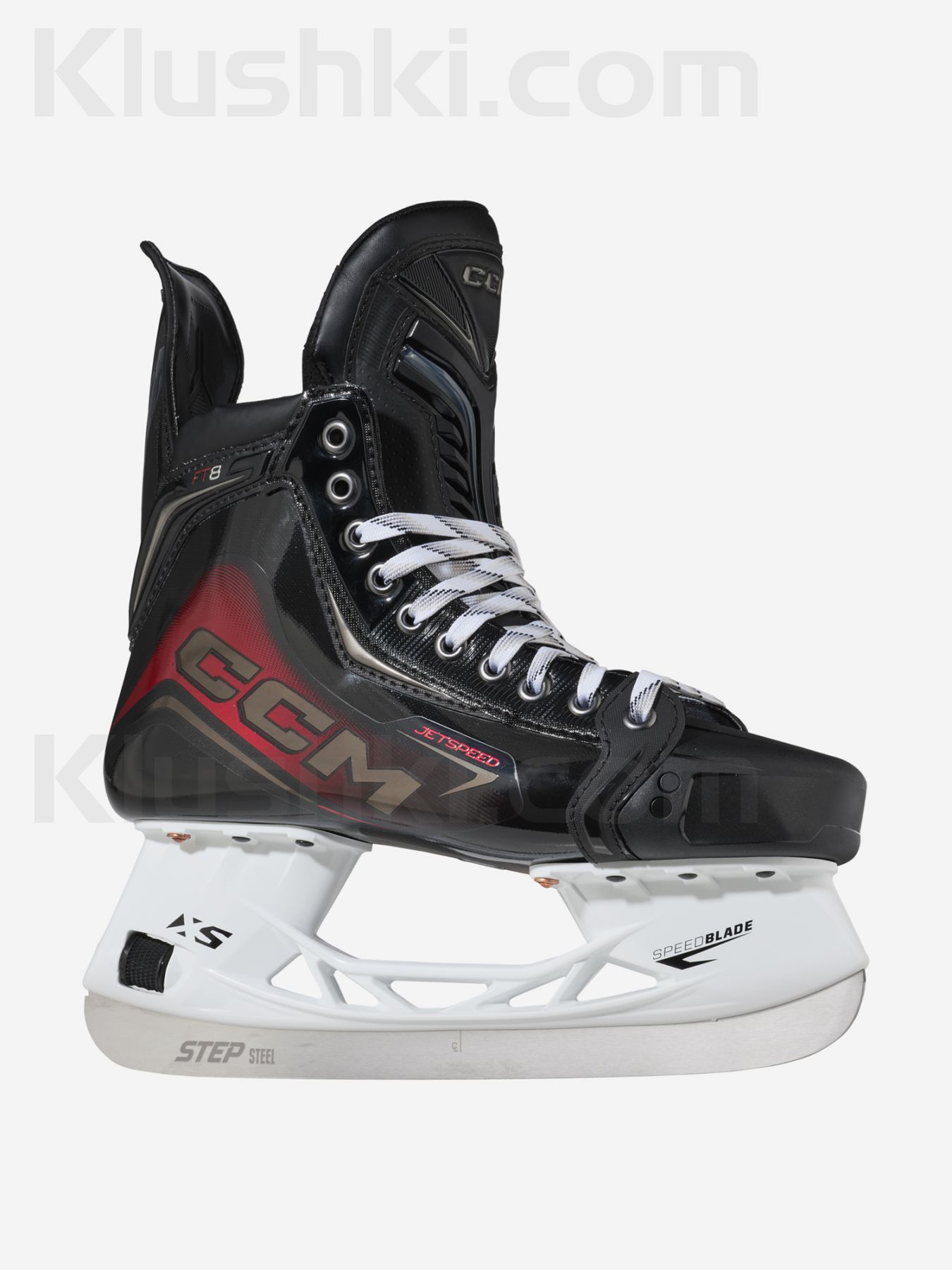 оньки Jetspeed FT8 SR — предтоповая модель линейки коньков Jetspeed 2025 года, предназначенная для профессиональных хоккеистов. Поставляются с лезвиями Step Steel из стали высочайшего качества с очень прочной и острой кромкой. Высота лезвий на 4 мм больше стандартных, что улучшает маневренность и увеличивает срок службы.